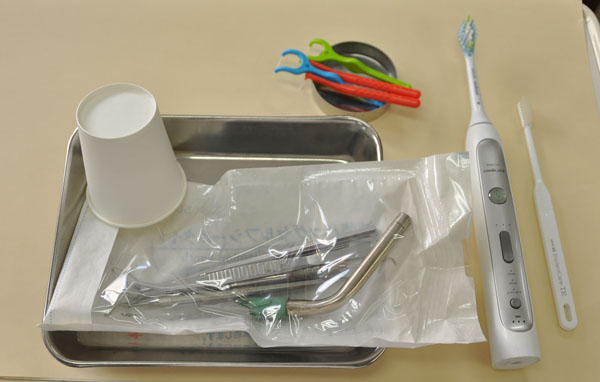 お口の中に直接入るものですから清潔そのものでなければいけません。歯科の治療は出血が多い治療です。血液と唾液はいろいろな病気の感染源となるため取り扱いには注意が必要です。患者様おひとりづつ診療のたびに用意されるものは滅菌パックに入っている金属性の治療器具はオートクレーブという高圧蒸気滅菌器により完全滅菌を行なっております。